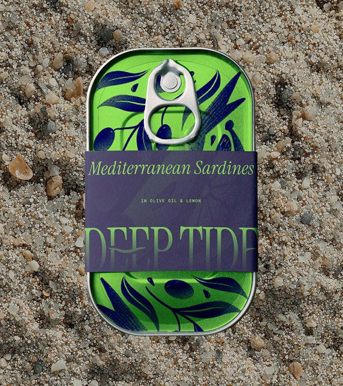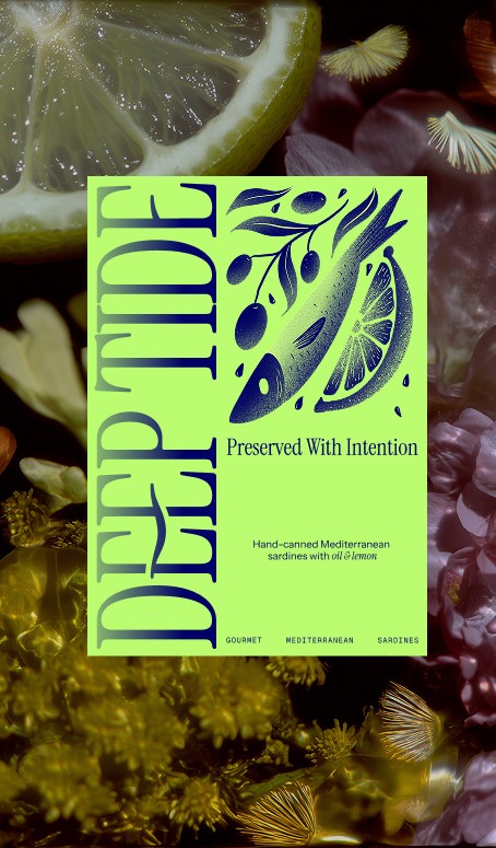 Deep Tide is a conceptual brand identity and packaging system for a gourmet canned sardine company. The project explores how design can elevate preserved food into a considered product through clarity, structure, and expression.